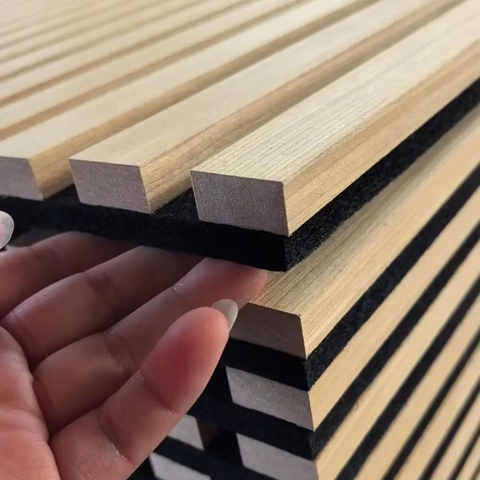 Panel de pared de chapa de madera de listón 3D moderno, panel de pared acústico MDF autoadhesivo para decoración Interior de Hotel, absorbente de sonido